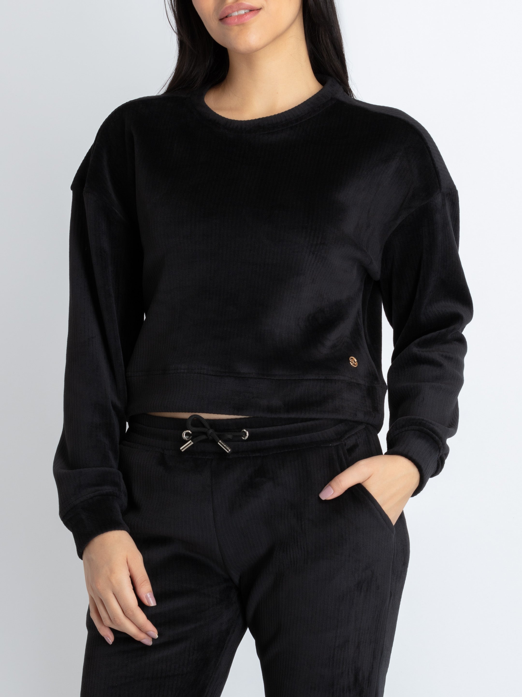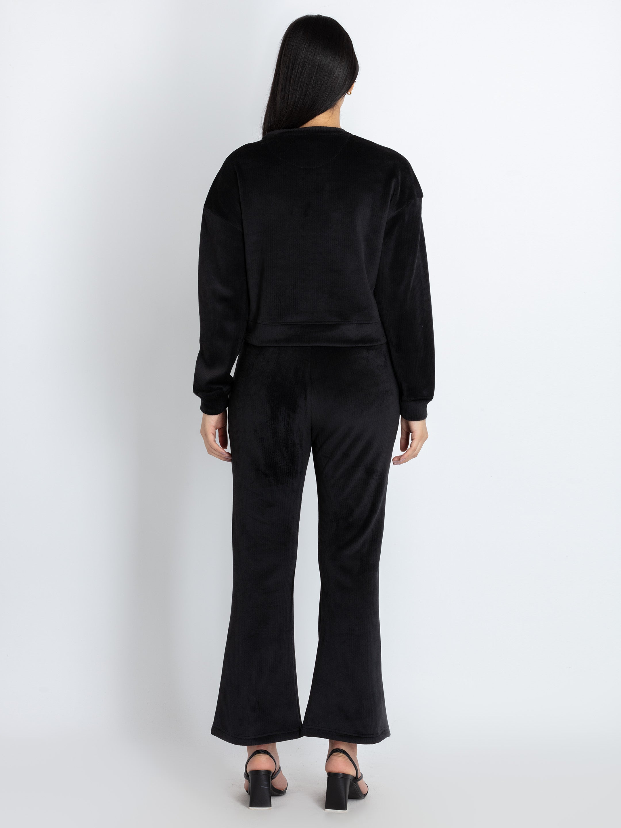 BLACK Tracksuit Has Round Neck, Full Sleeves.