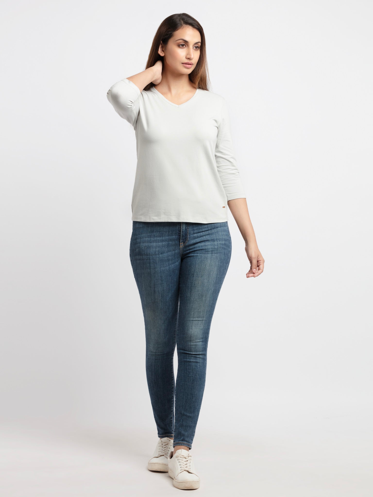 FRESH TINT Solid V Neck T-Shirt has V Neck, 3/4th Sleeves .