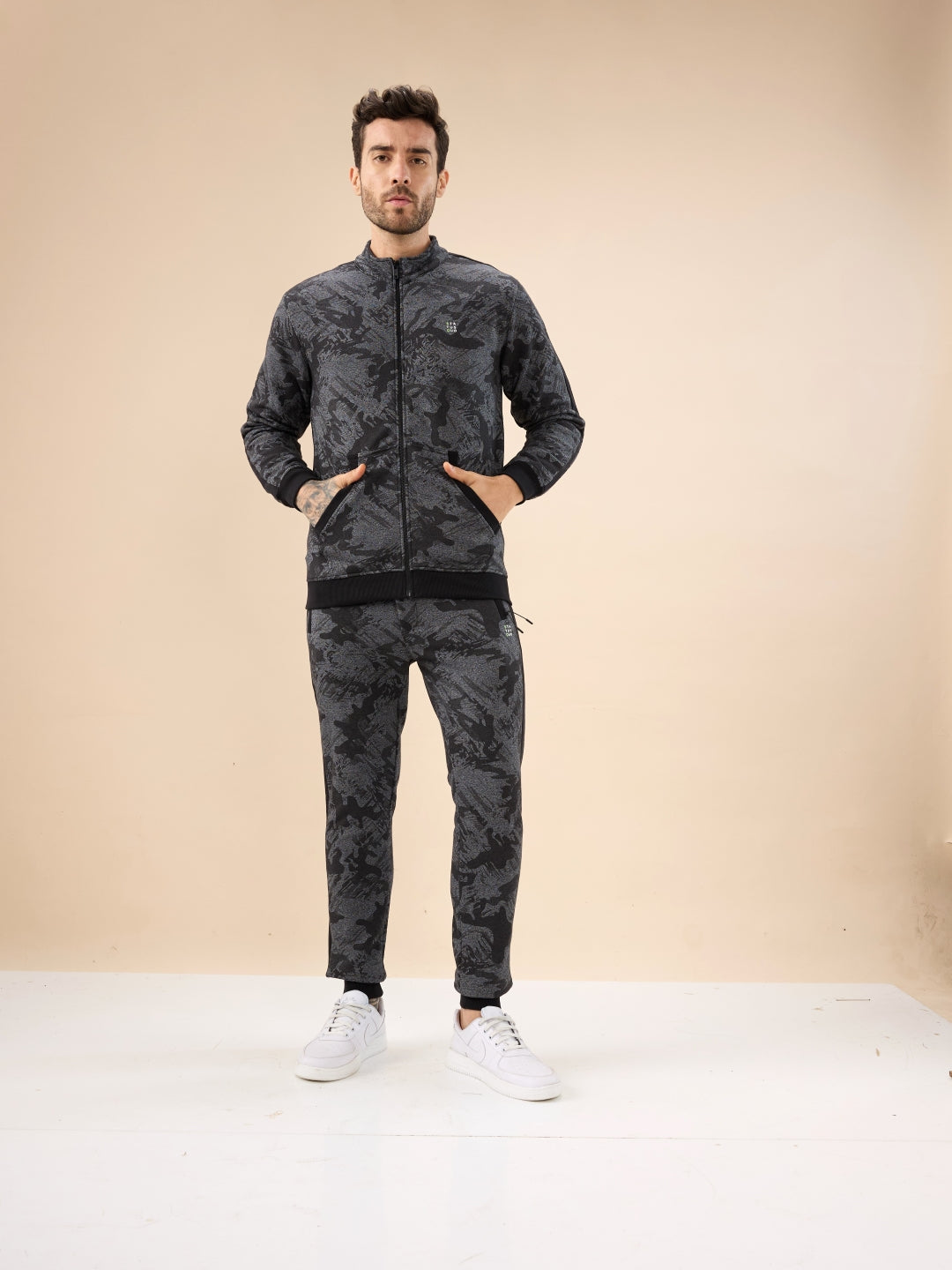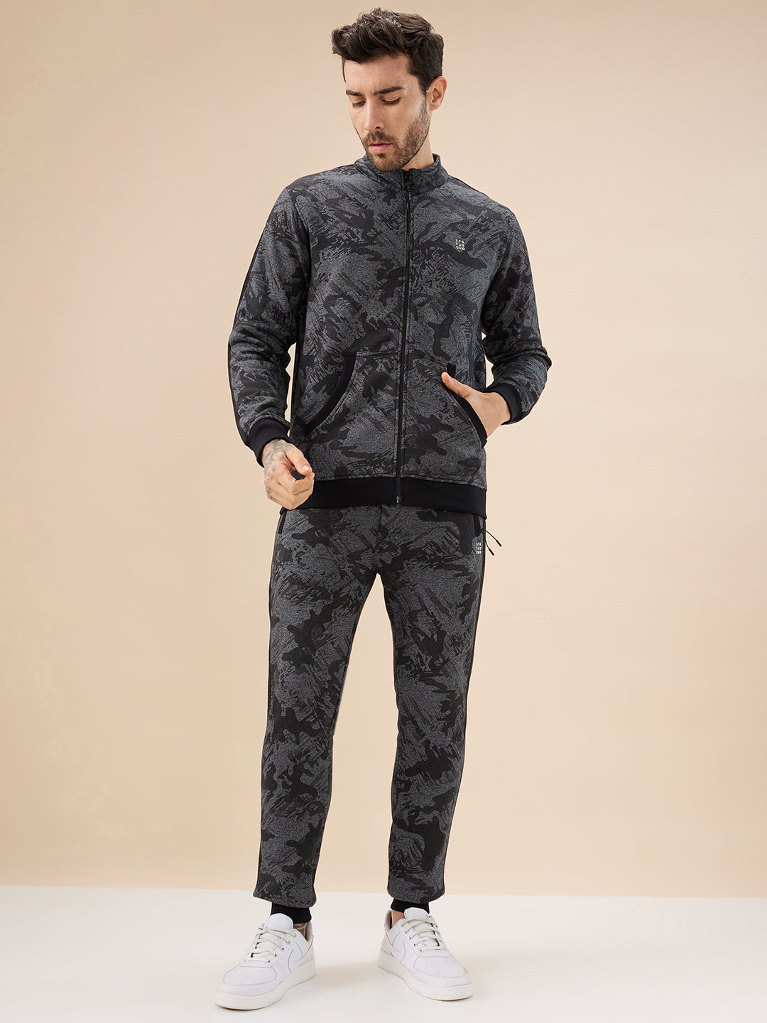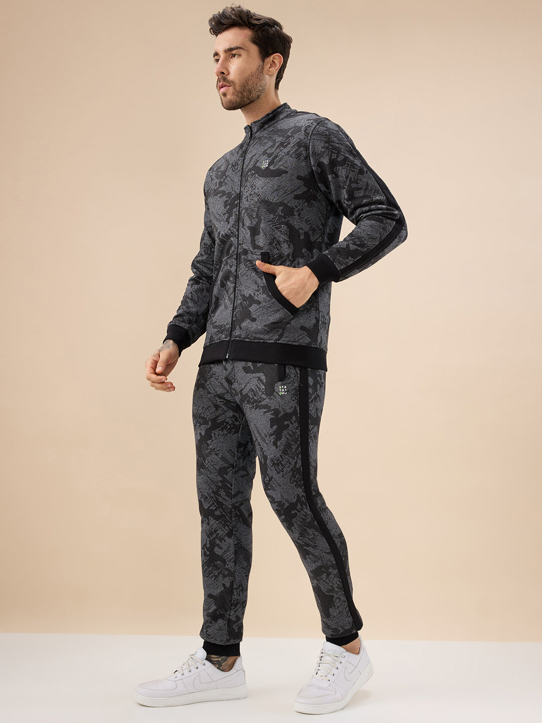 BLACK Status Quo Men's Printed Regular Fit Tracksuit with Jacket Kangaroo Pockets and Joggers