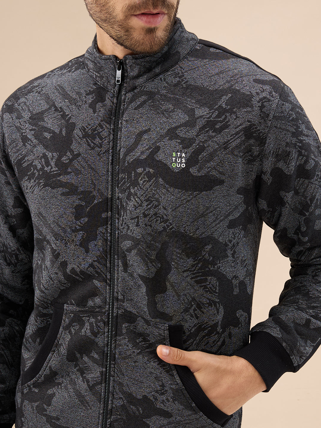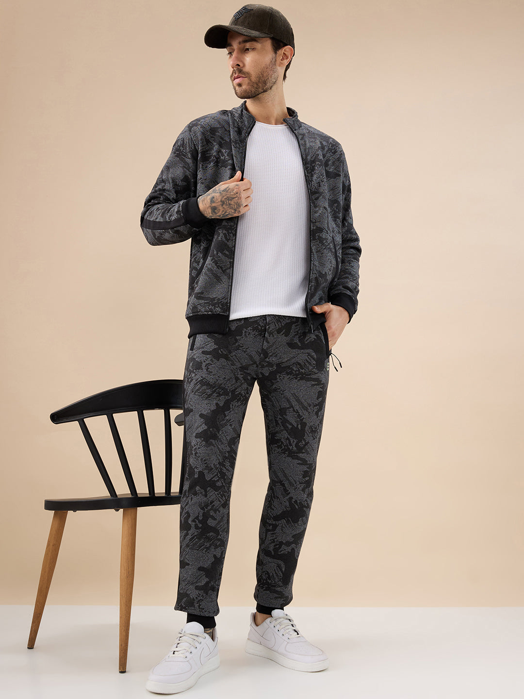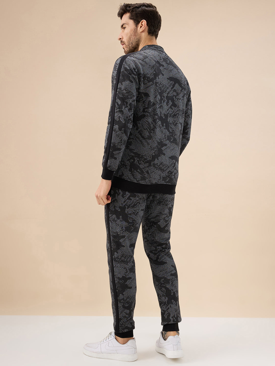BLACK Status Quo Men's Printed Regular Fit Tracksuit with Jacket Kangaroo Pockets and Joggers