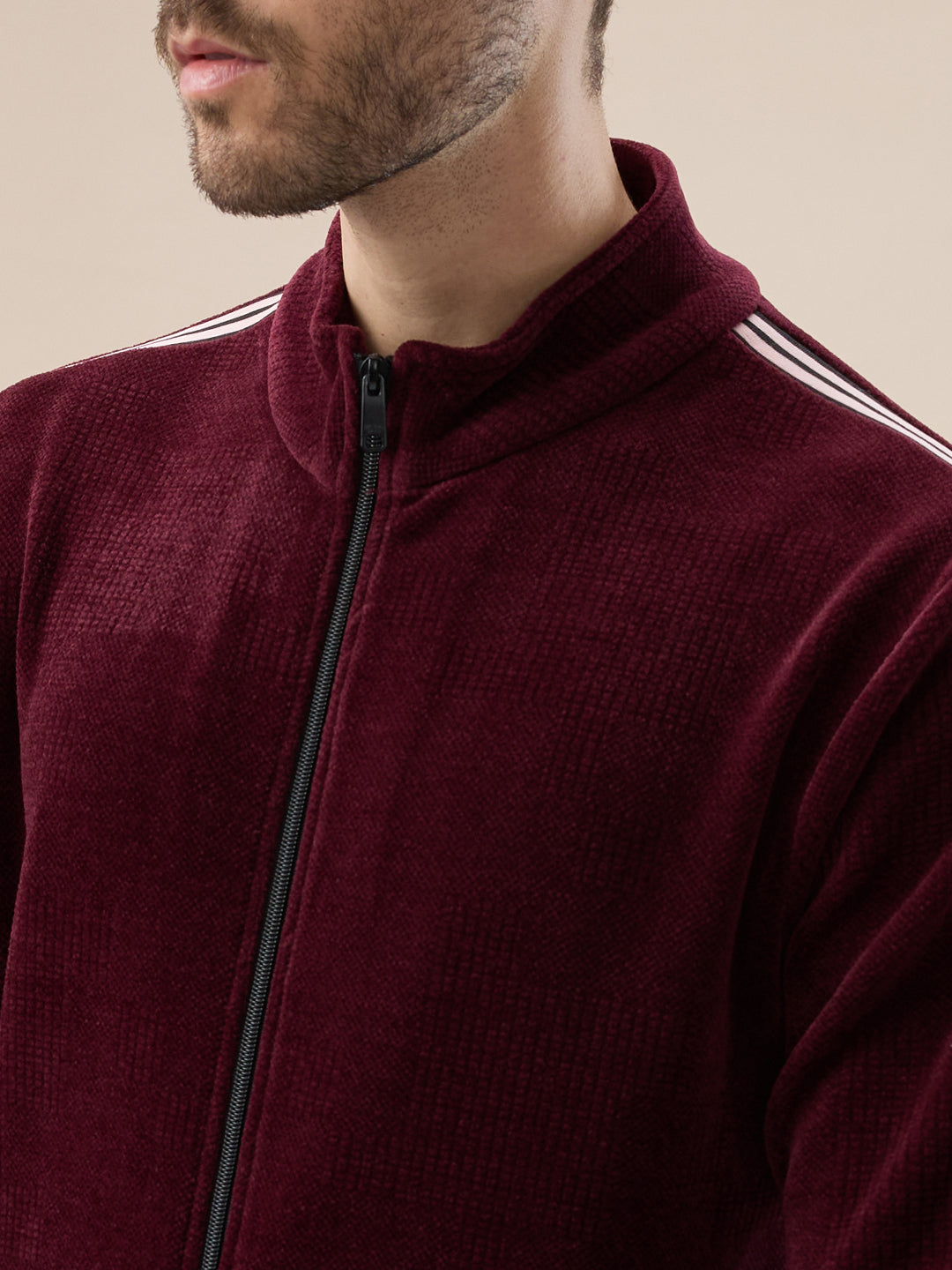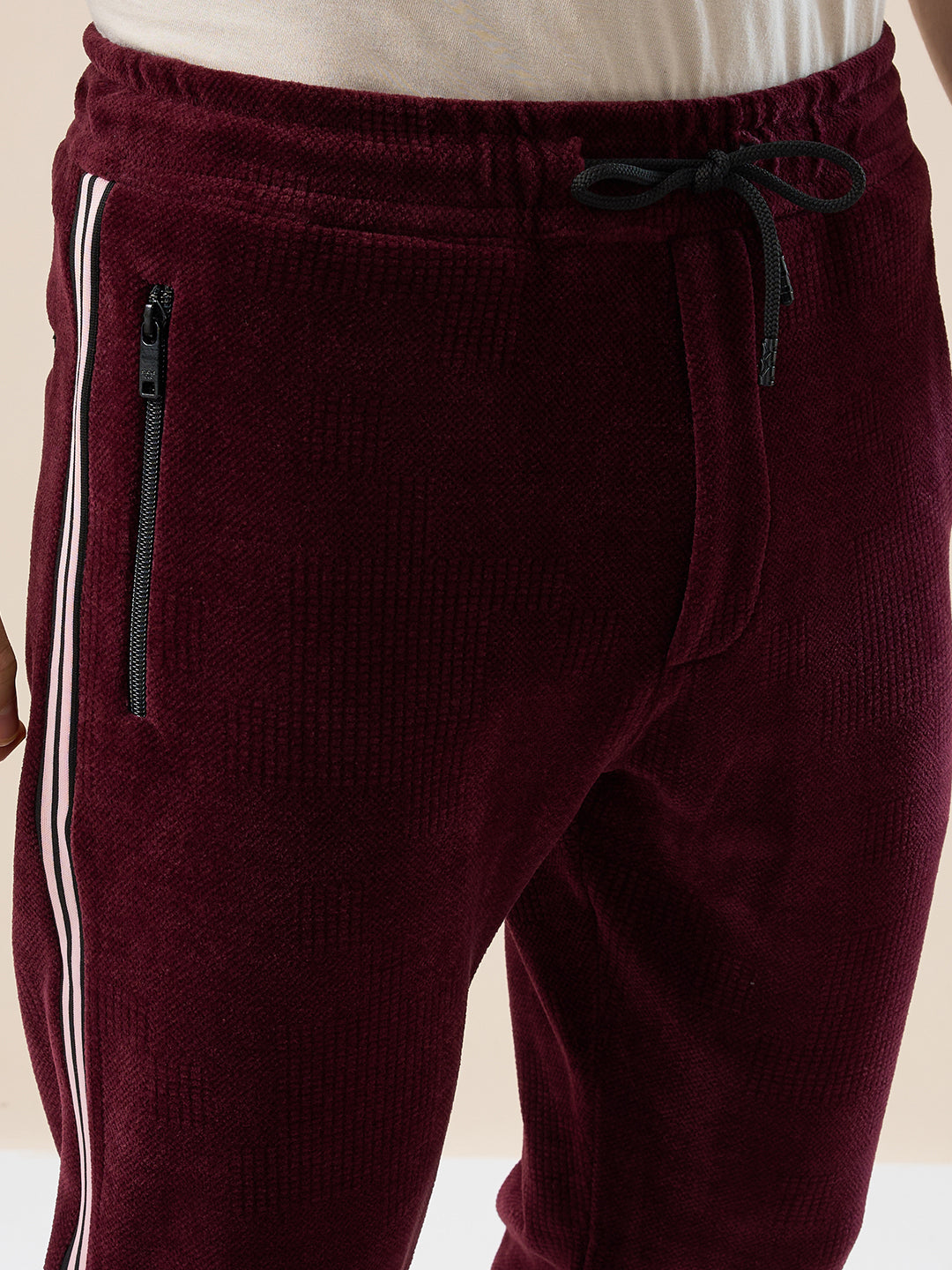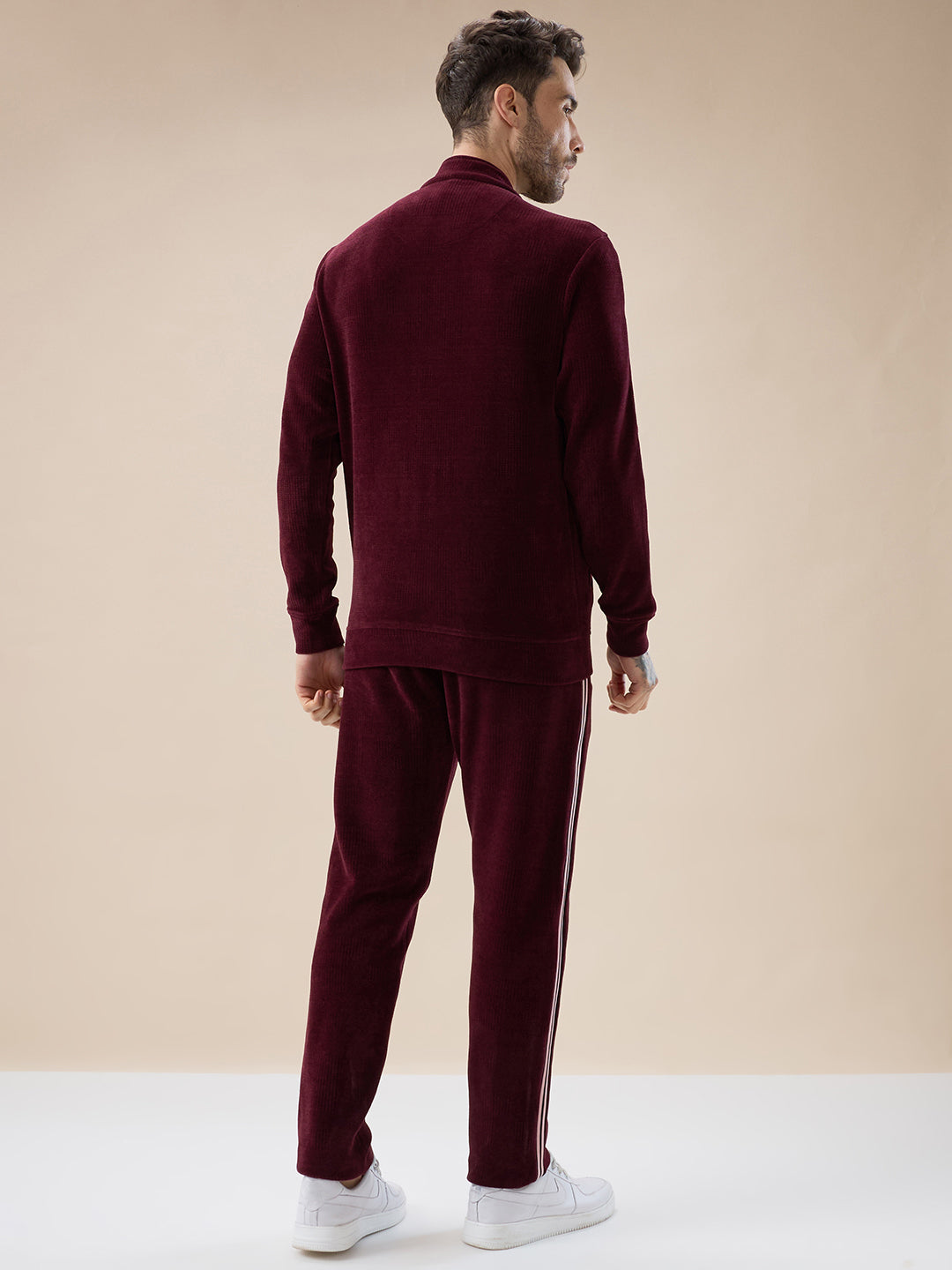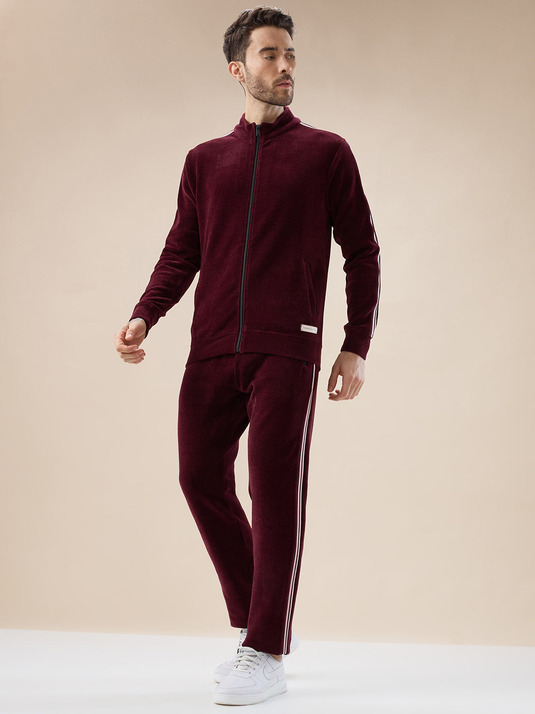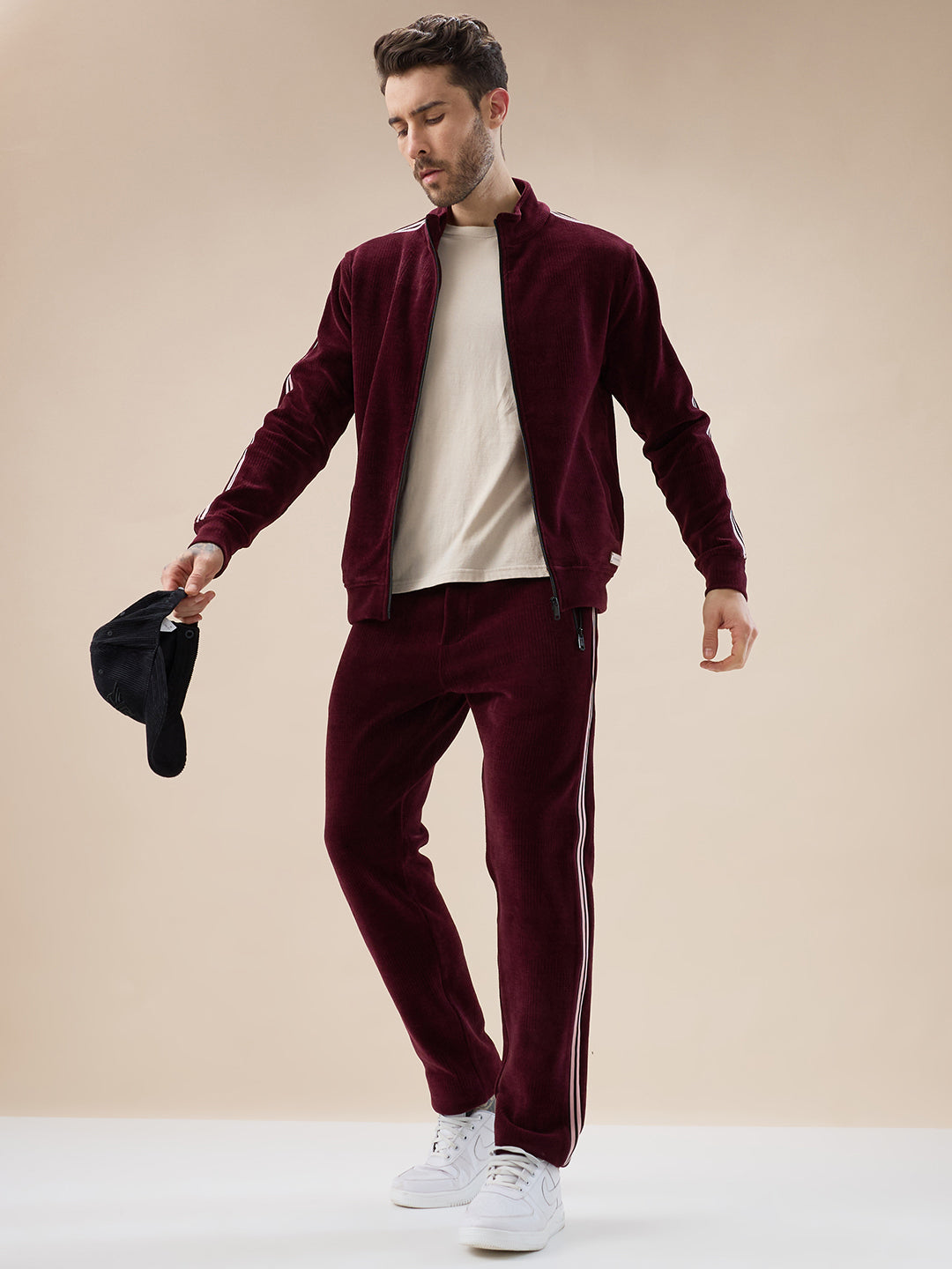 MAROON Men's Solid Corduroy Regular Fit Tracksuit with Side Stripe Detail