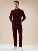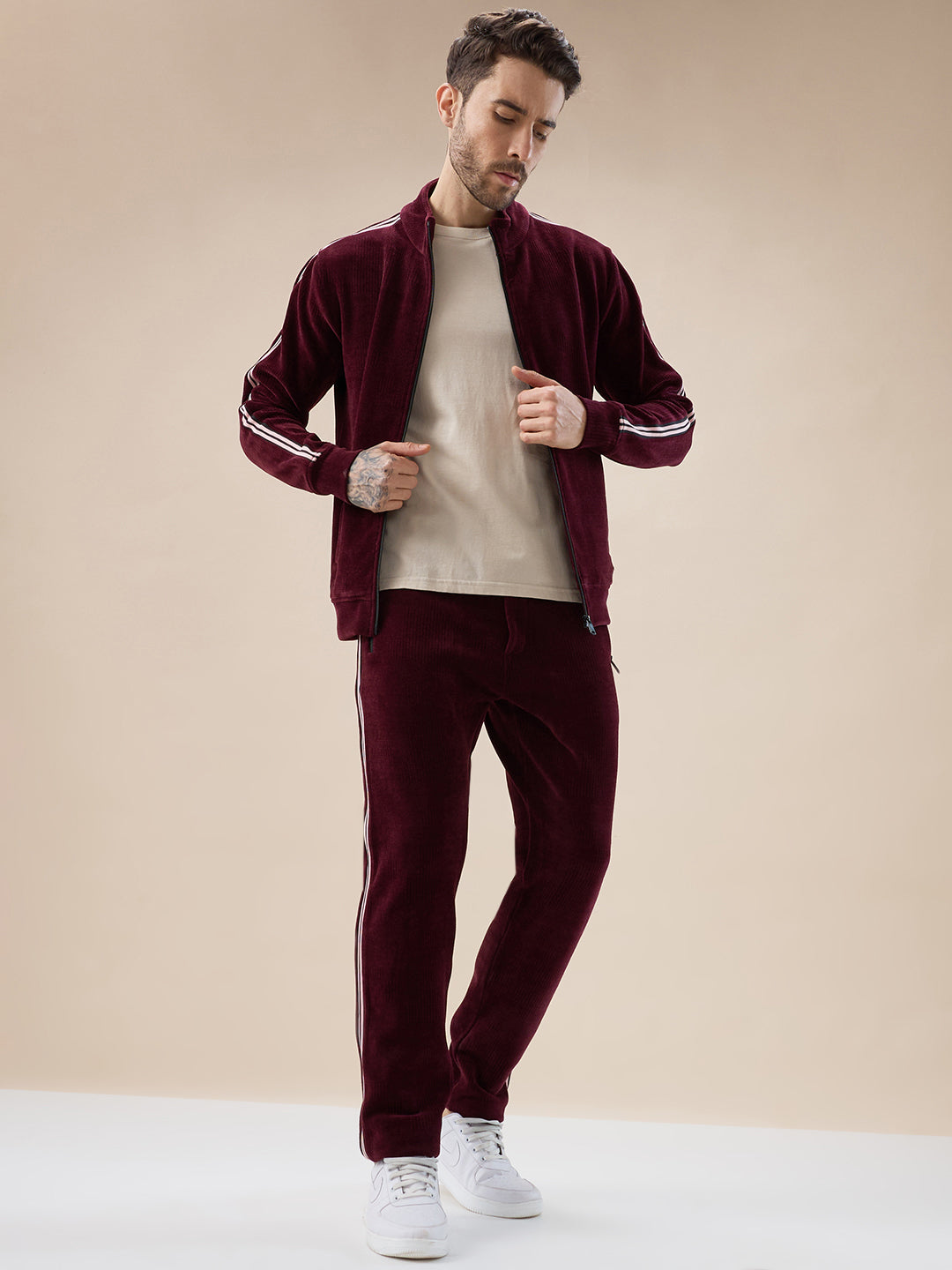 MAROON Men's Solid Corduroy Regular Fit Tracksuit with Side Stripe Detail