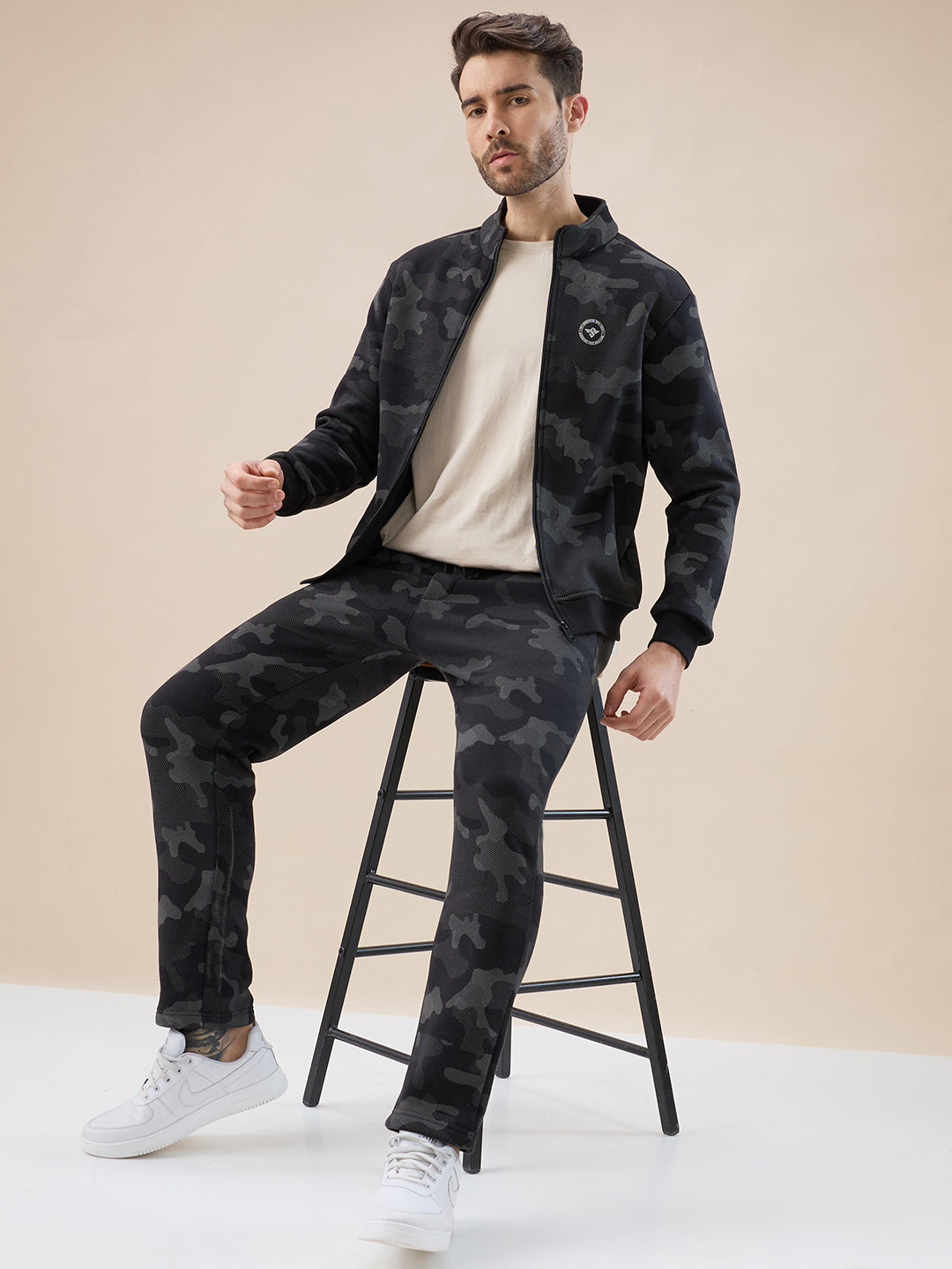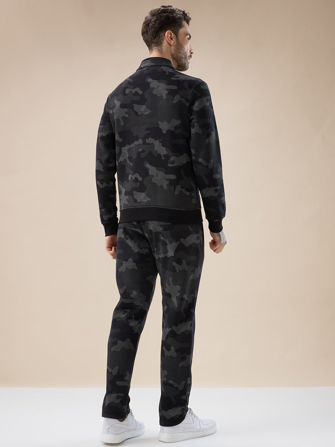 BLACK Men's Camouflage Print High Neck Regular Fit Tracksuit