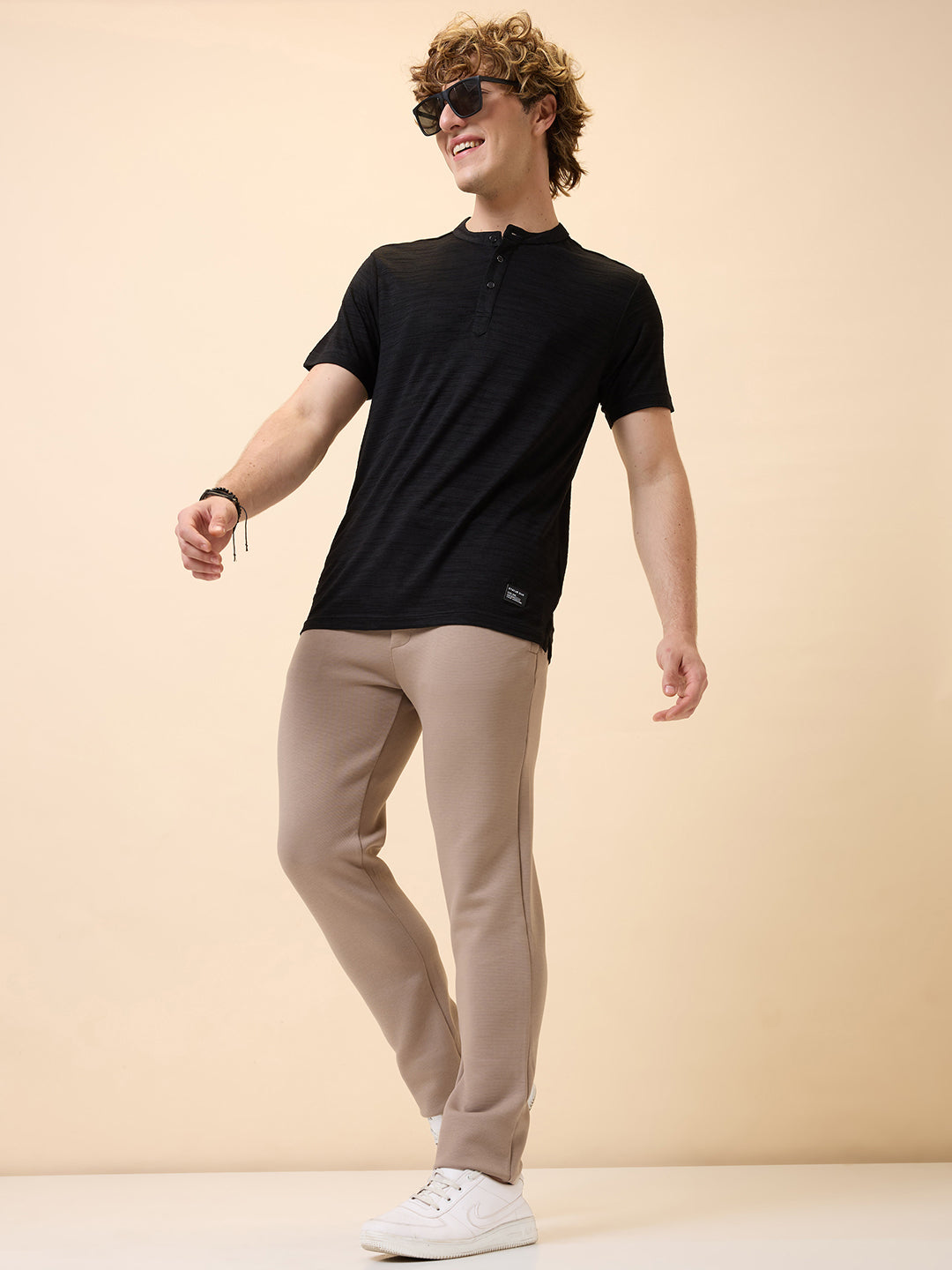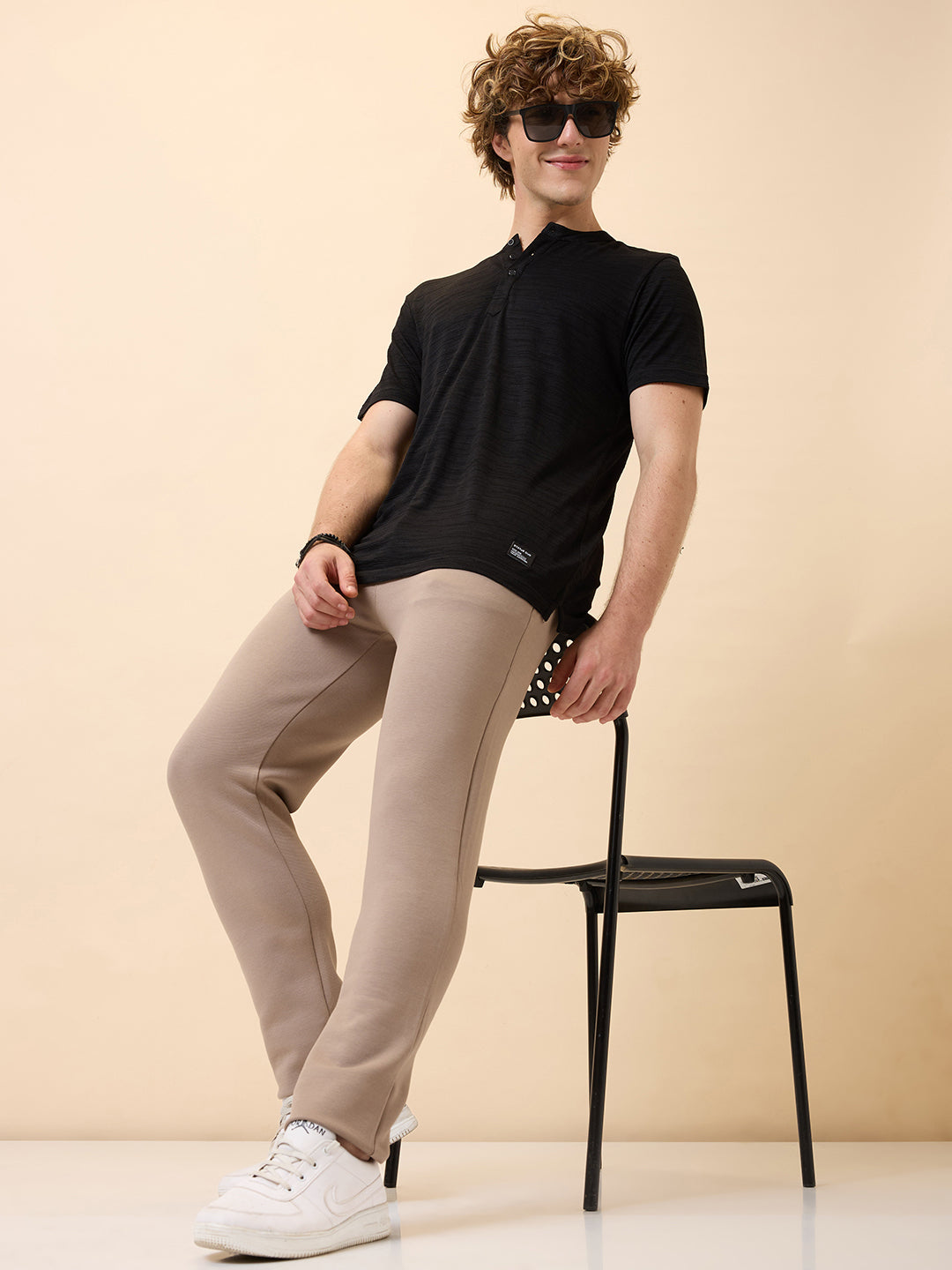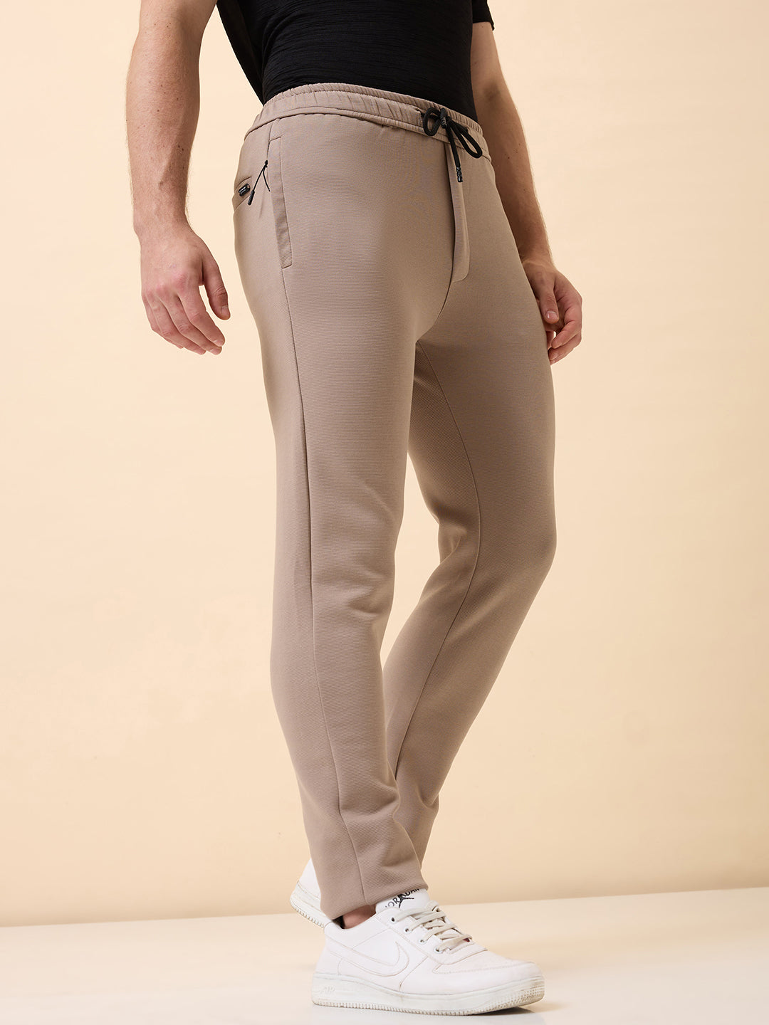 LT.BROWN Men's Solid with Side Pockets Drawstring Trackpant